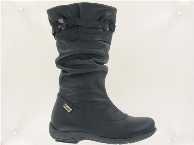 Cizme bleumarin, piele moale, captusite cu piele, cu fermoar lateral. Talpa flexibila
