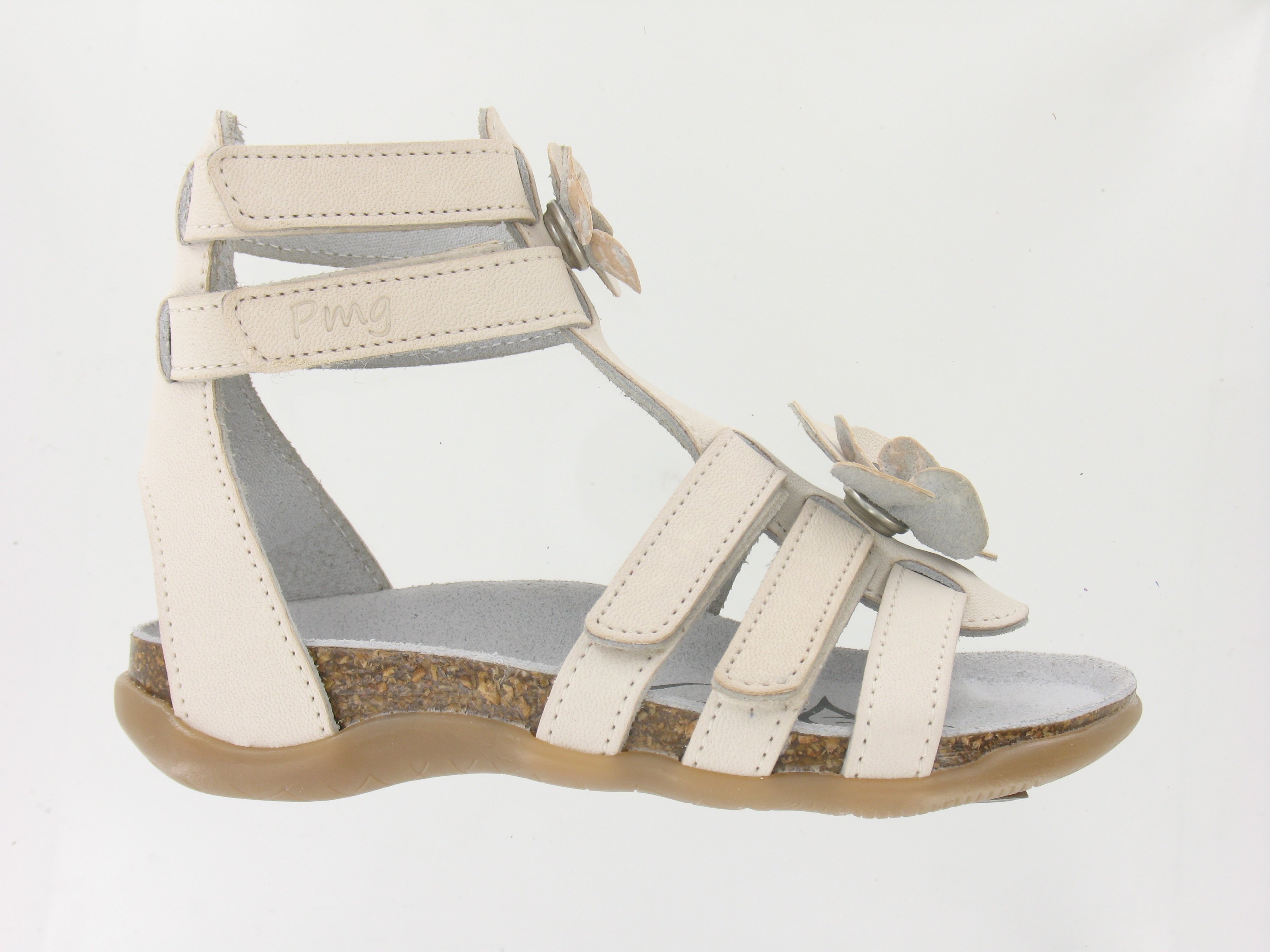 Sandale din piele bej, captusite cu piele, cu talpa ortopedica usoara si flexibila; inchidere cu arici si reglabile pentru fiecare picior: ingust sau mai lat.
